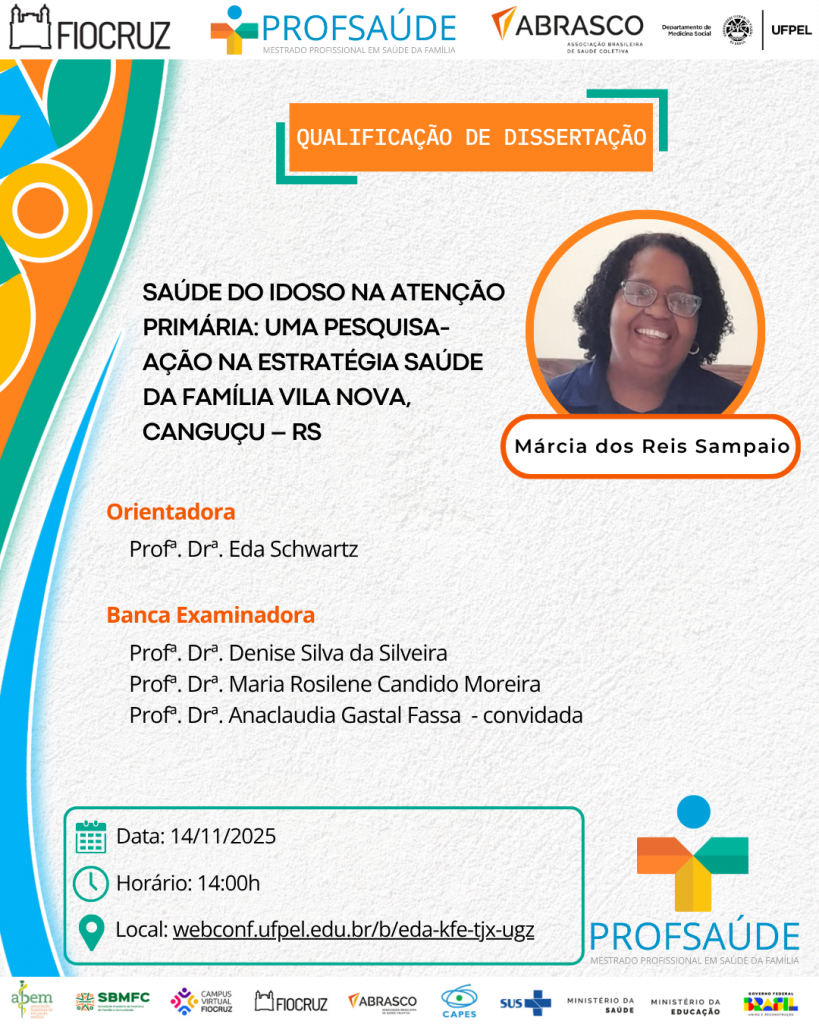 Divulgamos a próxima banca de qualificação do Mestrado Profissional em Saúde da Família: